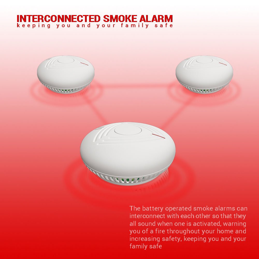 【Interlinked Smoke Alarm】the wireless battery-operated interlinked smoke alarms can interconnect with each other. One goes all go wireless interconnected smoke alarms so that they all sound when one is activated, warning you of fire throughout your home and increasing safety, keeping you and your family safe