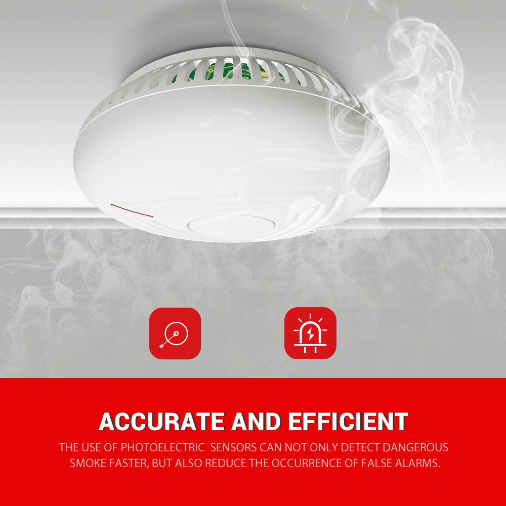 【10 Years Battery & Photoelectric Sensor】 interlinked Smoke alarm provides 10 years of continuous power with a built-in lithium battery, saving on energy while ensuring the alarm is always on, no need to change the battery constantly. Photoelectric sensor alarm detects large particles typical of smoky, smoldering fires while reducing the number of false alarms
