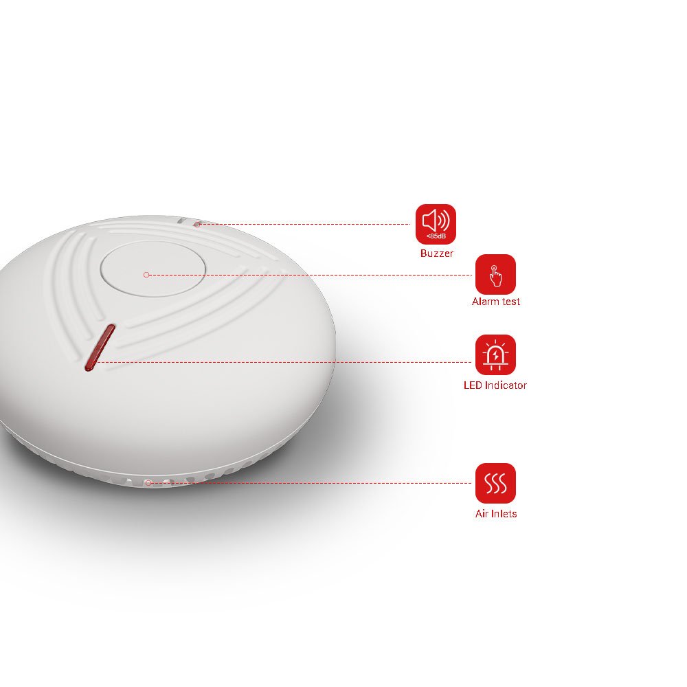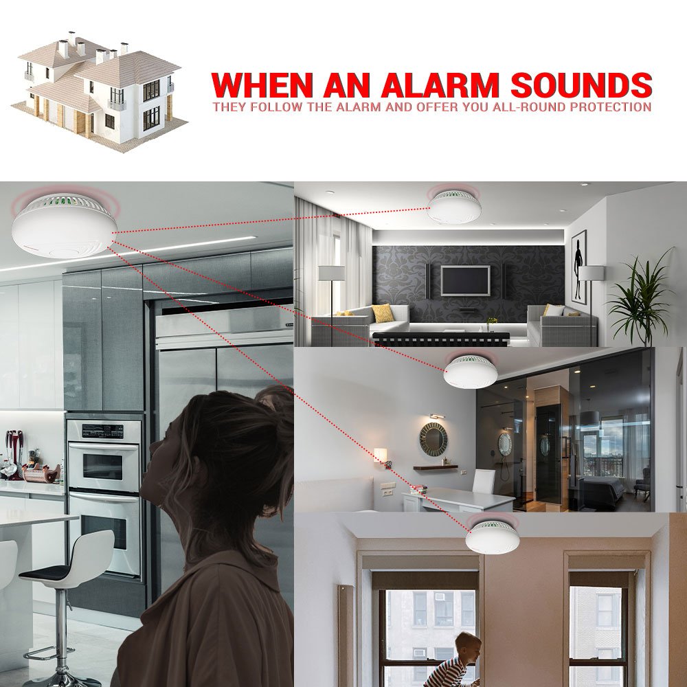 A wireless interconnected smoke alarm is compatible with other detectors (CO, Remote controller, Wifi interconnected smoke alarm)wireless-enabled alarms in your home to create a wireless safety network